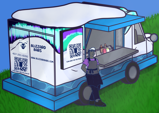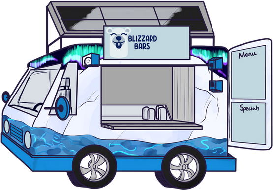 Accessibility is not just limited to attractions. More often than not, there are growing challenges to make foods safe for those with sensitivities to particular ingredients. I used the North Pole and polar bears to create an allergy-friendly food truck. I researched different food truck designs, learned which licenses I needed to operate it, and how I could attract customers.